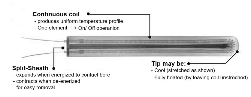 Split-sheath expansion creates optimal bore contact, dramatically improving heat flow versus standard heaters.